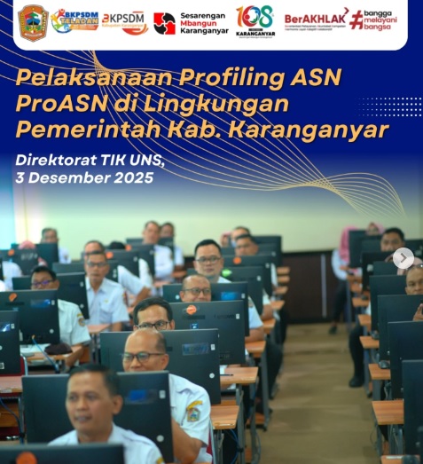 Kegiatan Uji Potensi dan Kompetensi Profiling ASN (proASN) di lingkungan Pemerintah Kabupaten Karanganyar Tahun 2025 dilaksanakan pada Rabu, 3 Desember 2025 bertempat di Direktorat TIK UNS.