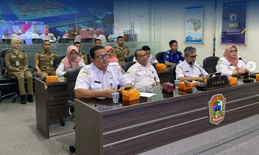 Sekretaris Daerah Kabupaten Karanganyar, Timotius Suryadi didampingi Kepala BKPSDM, Asisten Administrasi Umum, Kepala Dinas Kependudukan dan Catatan Sipil, serta Perangkat Daerah terkait mengikuti Video Conference Pembukaan Magang Praja Institut Pemerintahan Dalam Negeri (IPDN) Tahun Akademik 2024/2025 di Ruang SIC Dinas Komunikasi dan Informatika (9/4/2025).
